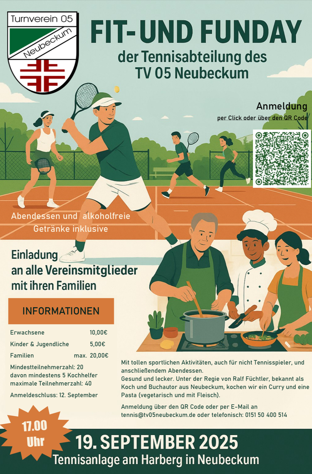 Einladung zum FIT- und FUNDAY am 19.09.25 Veröffentlicht am 20. August 2025 von Eva Kaiser Anmeldung bis zum 12.09.25 hier. Allgemein, Tennis