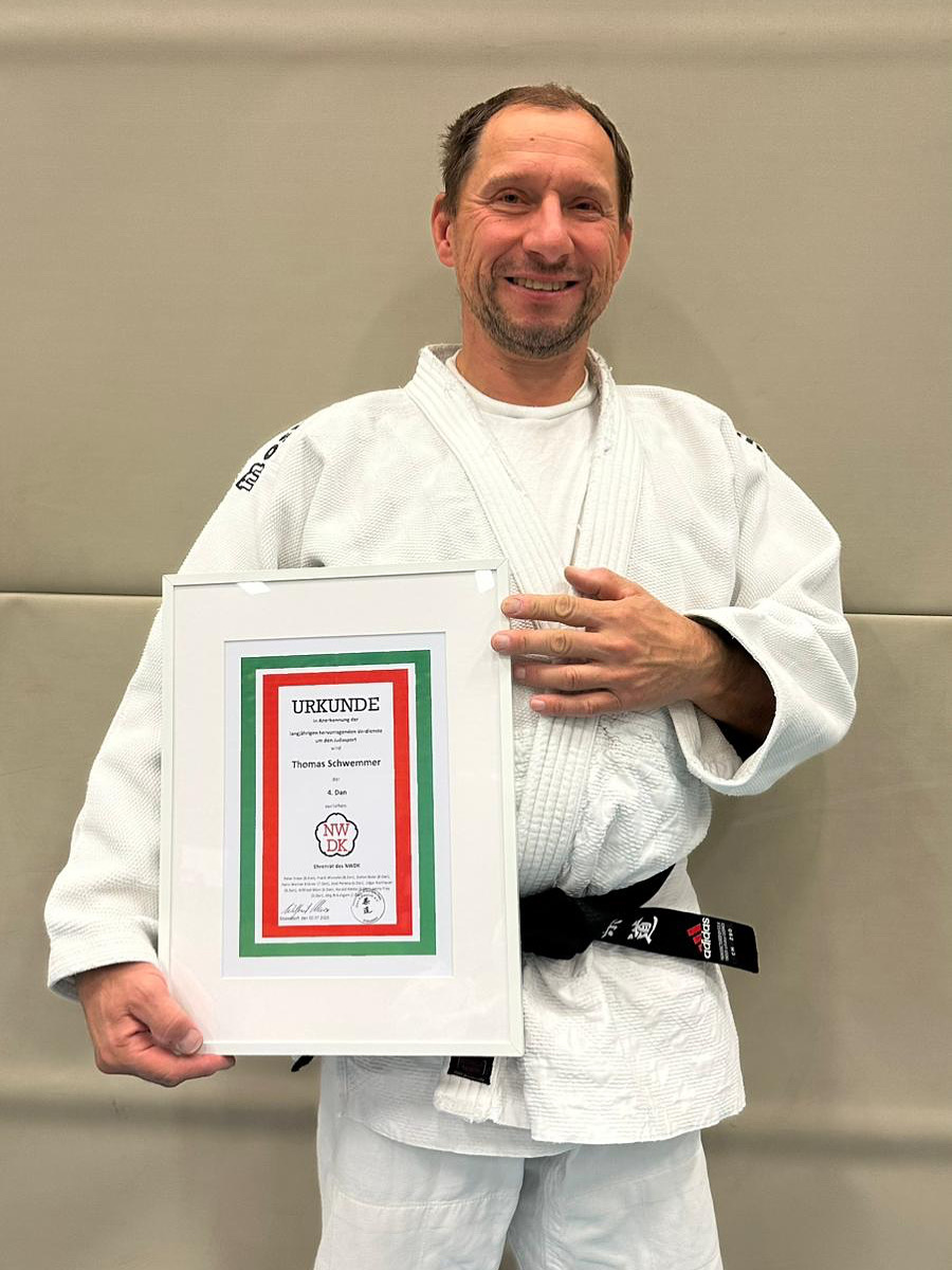 Am 02.07.2025 wurde ihm durch den NWDK der 4. Dan im Judo verliehen – eine Auszeichnung für Jahrzehnte voller Einsatz auf und neben der Matte.