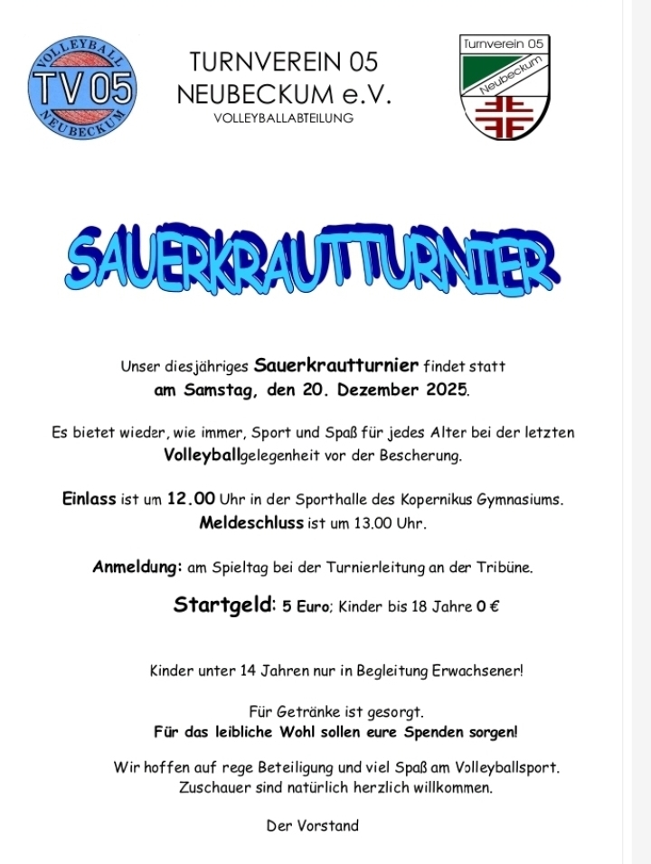 TV 05 Neubeckum e.V. > Allgemein > Einladung zum Sauerkrautturnier am 20.12.25