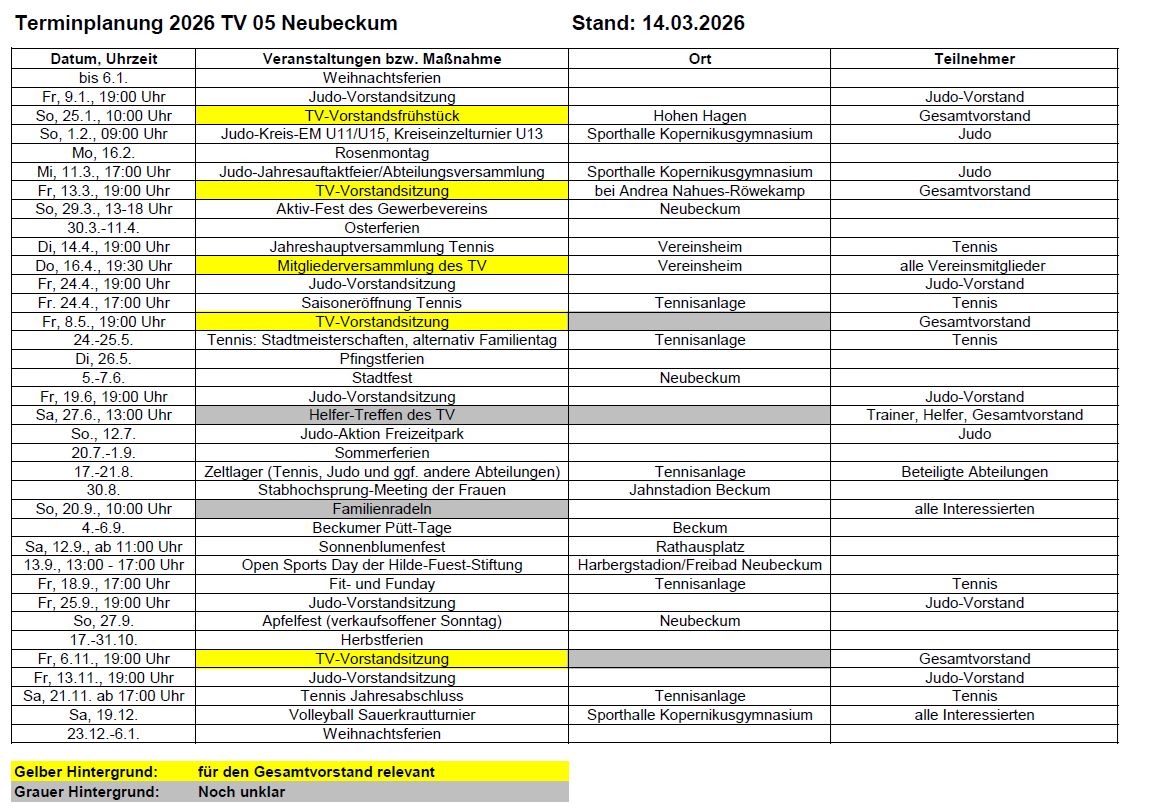 - 11.-15.8. – Zeltlager (Tennis, Judo und ggf. andere Abteilungen)